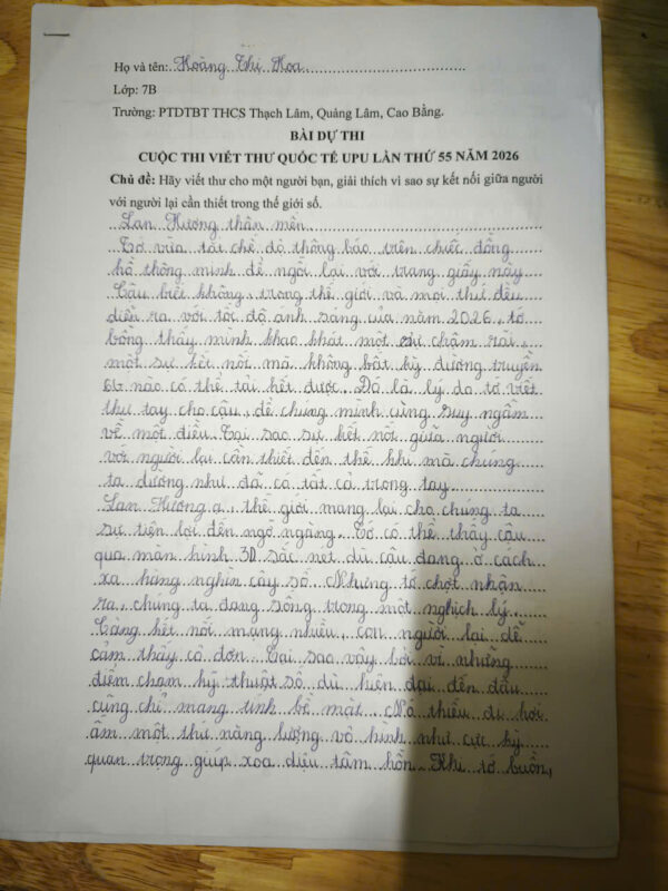 V/v triển khai Cuộc thi Viết thư quốc tế UPU Việt Nam lần thứ 55 (năm 2026). Các em   rất hào hứng tham gia vào việc viết thư. Qua đó các em hiểu được thế nào là tình yêu thương kết nối giữa người với người.